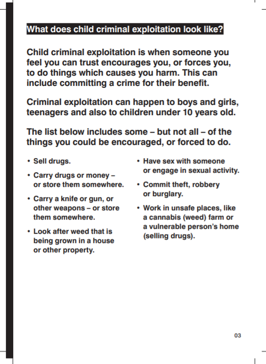 Merseyside Violence Reduction Partnership have developed a campaign to raise awareness about the impact of Child Criminal Exploitation (CCE). Click on the links for important information.